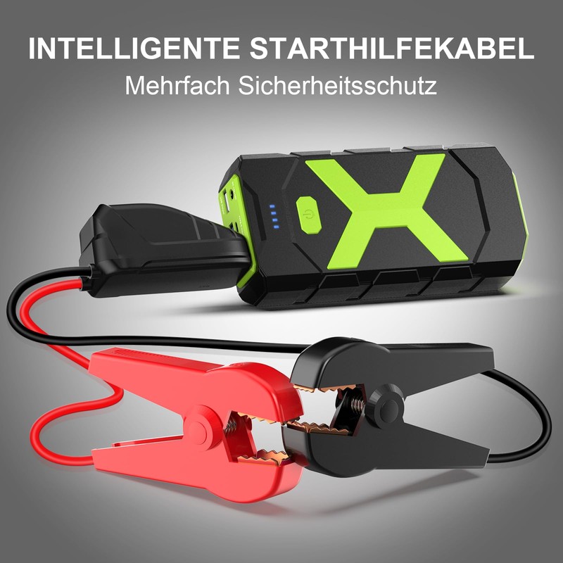 - Intelligent jump leads: safe and easy to use portable 2000 amp battery booster without the worry of wrong connections or sparks. The intelligent jump leads are built with high-quality metal clips to prevent breakage caused by long-term use. And the portable battery jump starter has 8 protectors, including overcurrent protection, overload protection, overvoltage protection and overcharge protection, keep it absolutely safe when starting your car.