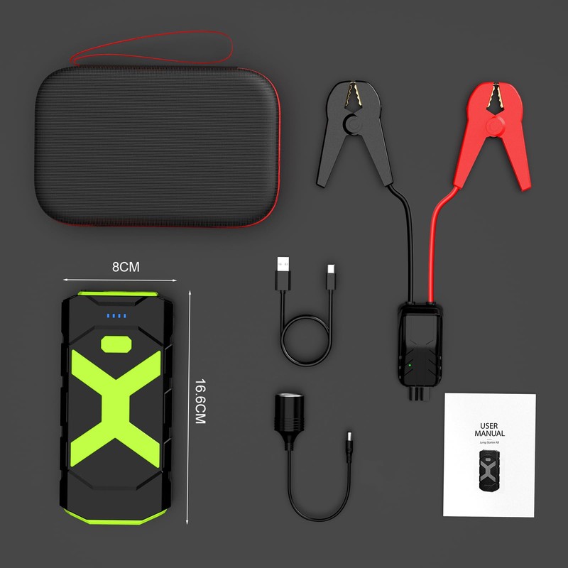 It is a portable and compact car jumper starter portable with USB charger, can be carried in a bag of clothes, it is convenient to pack the jumper starter in your car.