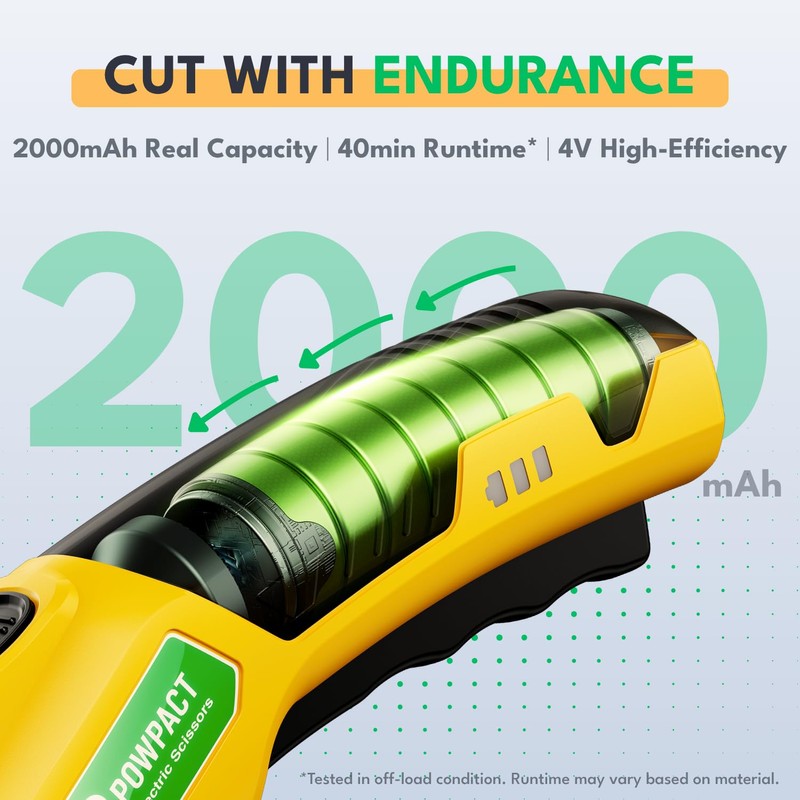 - (RECHARGEABLE & READY TO GO): With a 2000mAh rechargeable battery and USB-C fast charging, this cordless scissor tool offers up to 40 minutes of runtime and automatic safety lock for smart use.