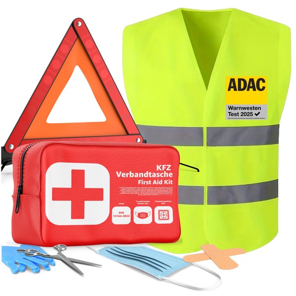 • Everything you need: This well thought-out breakdown kit contains all the essential safety items: first aid kit according to DIN 13164, safety vest according to ISO 20471 and other important emergency components - ideal for any car journey.