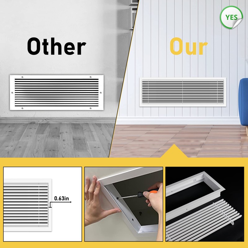 - DURABLE MATERIAL-Linear Bar Air Grille made of high quality aluminum constructed with powder coated finish,No sharp edges,no deformation,durable and long lasting.