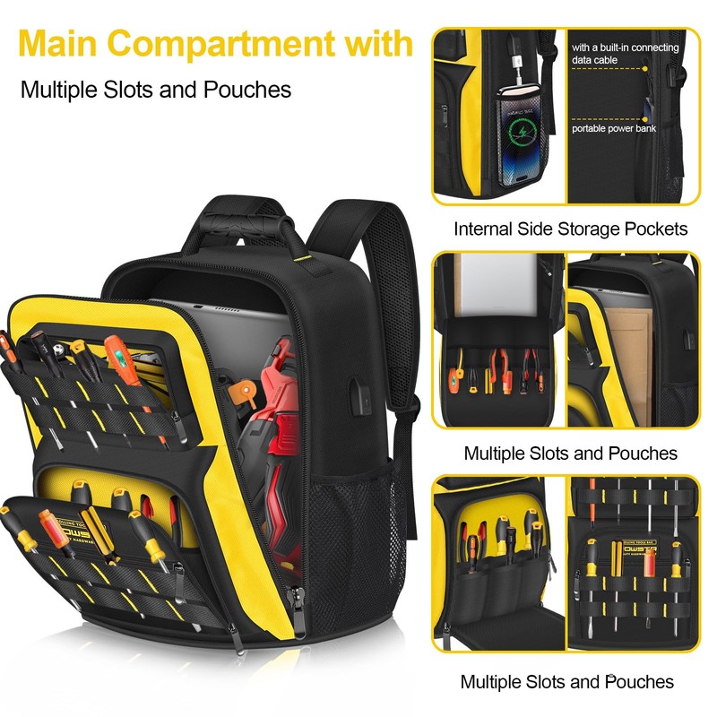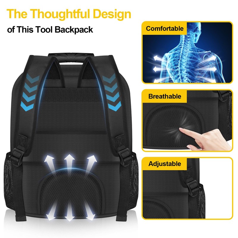 - 【High-Quality Fabric with Waterproof Base】: The overall double-layer thickened Oxford fabric provides better protection for tools. The rubber hard bottom waterproof base with grooves enables the backpack to stand stably on the ground without shaking, and you don't have to worry about tools rusting due to moisture in rainy or snowy weather.