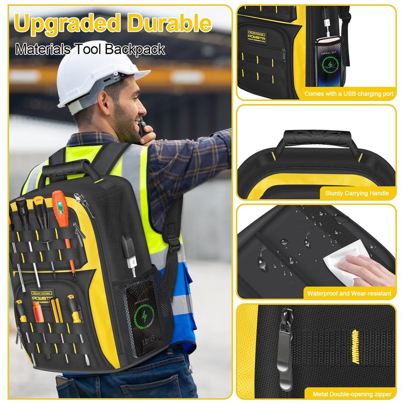 POWSTR 18" Tool Backpack Heavy-Duty Tool Bag,Organizer with 23 Pockets,Water-Resistant Work Backpack with Padded Shoulder & Waist Support,Tool backpack with laptop compartment
