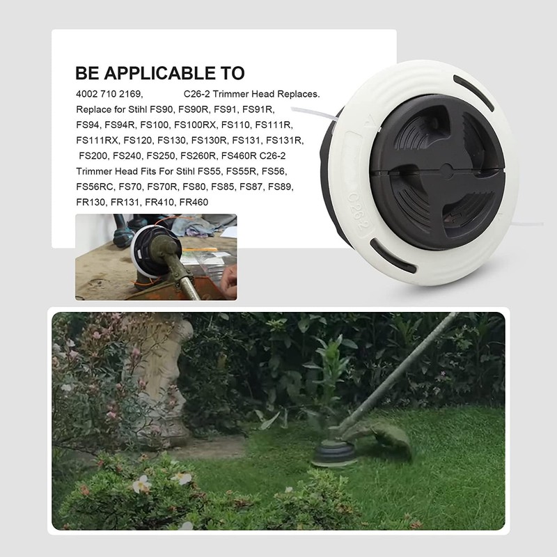 • 【Replace】: Replace for Stihl FS90, FS90R, FS91, FS91R, FS94, FS94R, FS100, FS100RX, FS110, FS111R, FS111RX, FS120, FS130, FS130R, FS131, FS131R, FS200, FS240, FS250, FS260R, FS460R C26-2 Trimmer Head Fits For Stihl FS55, FS55R, FS56, FS56RC, FS70, FS70R, FS80, FS85, FS87, FS89, FR130, FR131, FR410, FR460, FSA90, FSA130, FS-KM