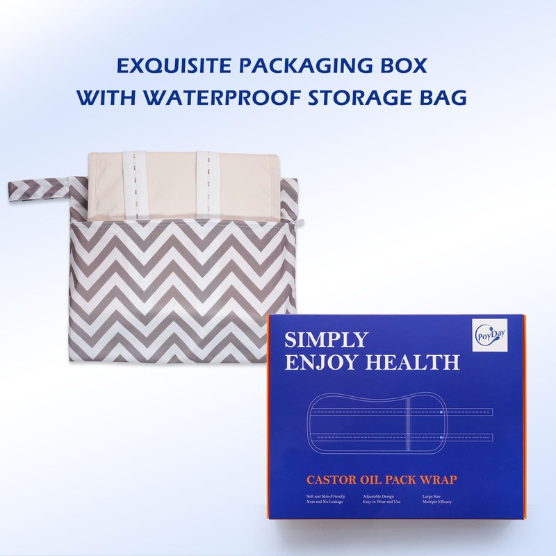• ELEGANT PACKAGED WITH STORAGE BAG FOR EASY TRAVEL AND STORAGE: You can give Poyday Castor Oil Pack as a gift. Elevate your self-care routine with the elegantly packaged castor oil compress, accompanied by a stylish storage bag. Enjoy the freedom of easy transport, whether you're on the go or simply seeking a clutter-free storage solution