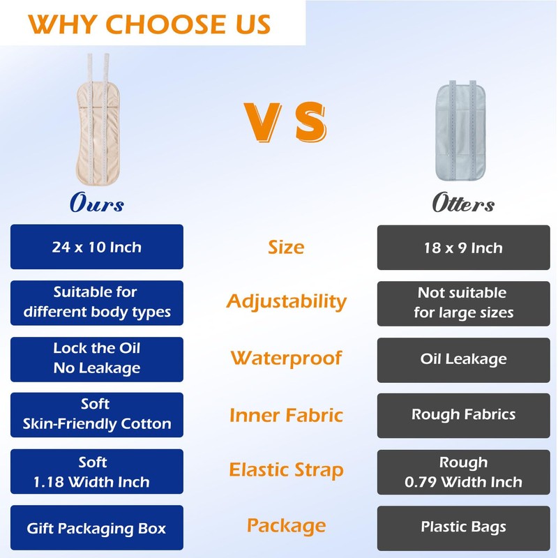 • OPTIMAL COMFORT FOR EVERY BODY TYPE: Discover the luxury of our larger-sized 24 x 10 Inch castor oil pack wrap, complete with adjustable straps tailored to fit every unique body shape. Enjoy the soothing benefits of our specially designed elastic straps softer and wider, providing durability and ensuring a snug, comfortable fit during every use. Our castor oil packs for liver detox are deal for individuals seeking a tailored experience for their wellness journey