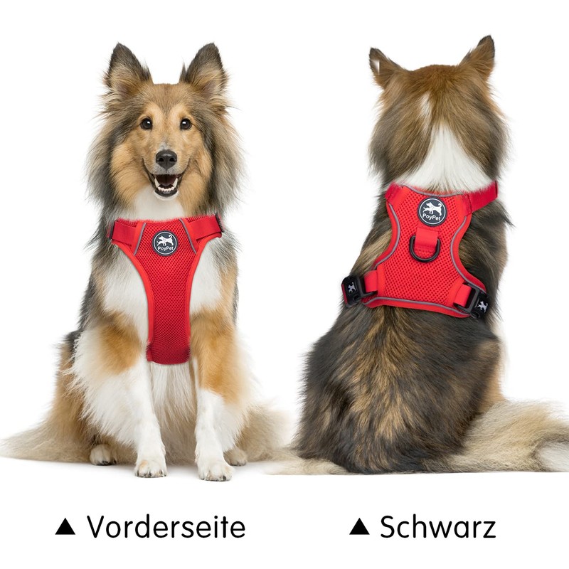 PoyPet Reflective, Soft, Breathable Mesh Dog Harness, Choke-Free Double Padded Vest with Adjustable Neck and Chest (Red, M)