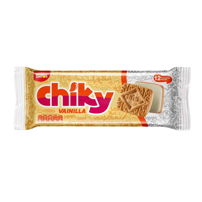 - CHIKY VANILLA: A crisp vanilla cookie dipped in Vanilla chocolate