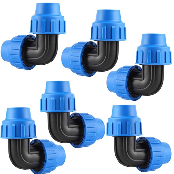 PP Compression Fitting Angle 32 mm PE Pipe, Pack of 6 PP Fitting Screw Connection for PE Pipe 32 mm PE Pipe Screw Connection Angle 90° Plastic PP Coupling