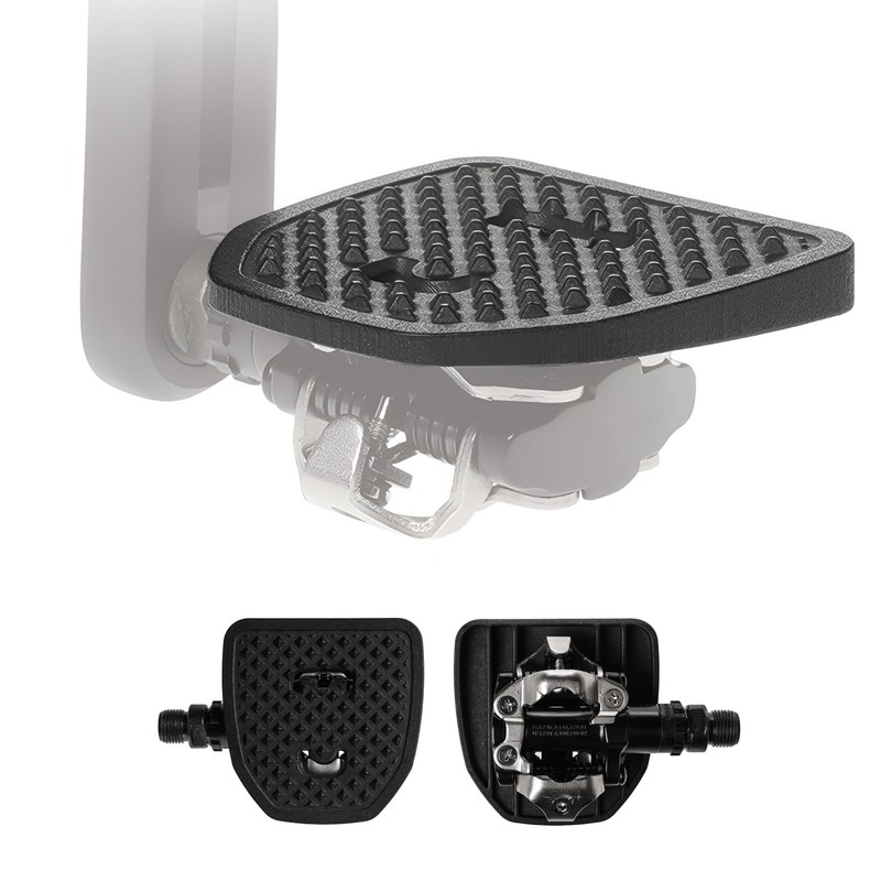 - ✔ The compact and light Pedal Plates offer a platform for extra comfort and safety by increasing the surface and grip of your clipless pedals.
