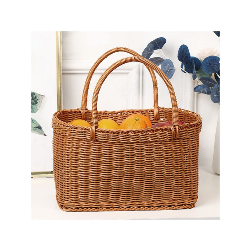 PP rattan picnic basket handle picnic bag brown, small