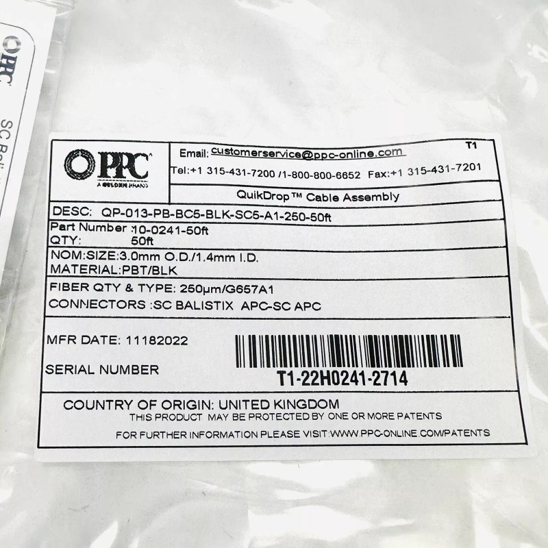 PPC A BELDEN BRAND QP-013-PB-BC5-BLK-SC5-A1-250-50FT FIBER OPTIC