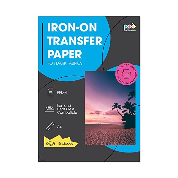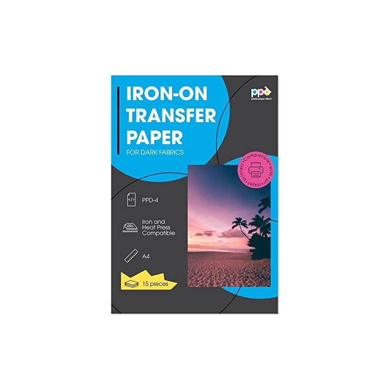 PPD 15 x A4 Inkjet Premium Transfer Paper for Dark Textile, Iron and Transfer Press PPD-4-15