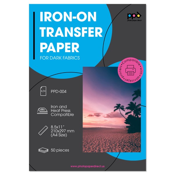 PPD Inkjet Iron on Transfer Paper for Dark T-Shirts, DIN A4, 50 Sheet
