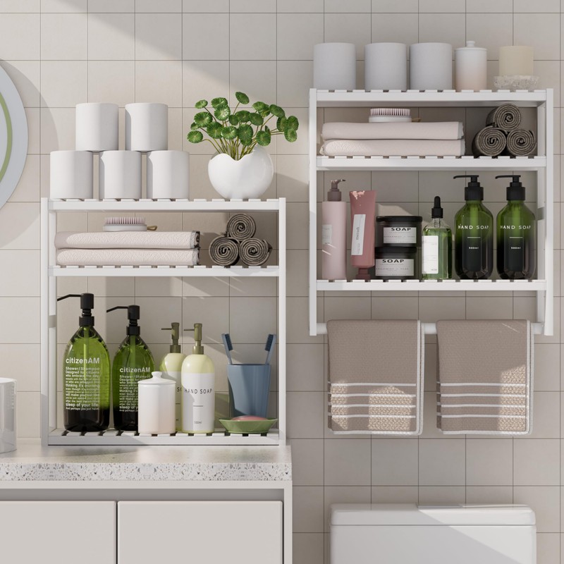 Not only can it hold various bathroom essentials, but it's also perfect for small potted plants or even perfume bottles, enhancing the overall look of your home. With the option to buy two or more units, you can customize it to your preferred height, thus fully utilizing the vertical space in your home. Upgrade your home organization with our Over-The-Toilet Storage Rack today!