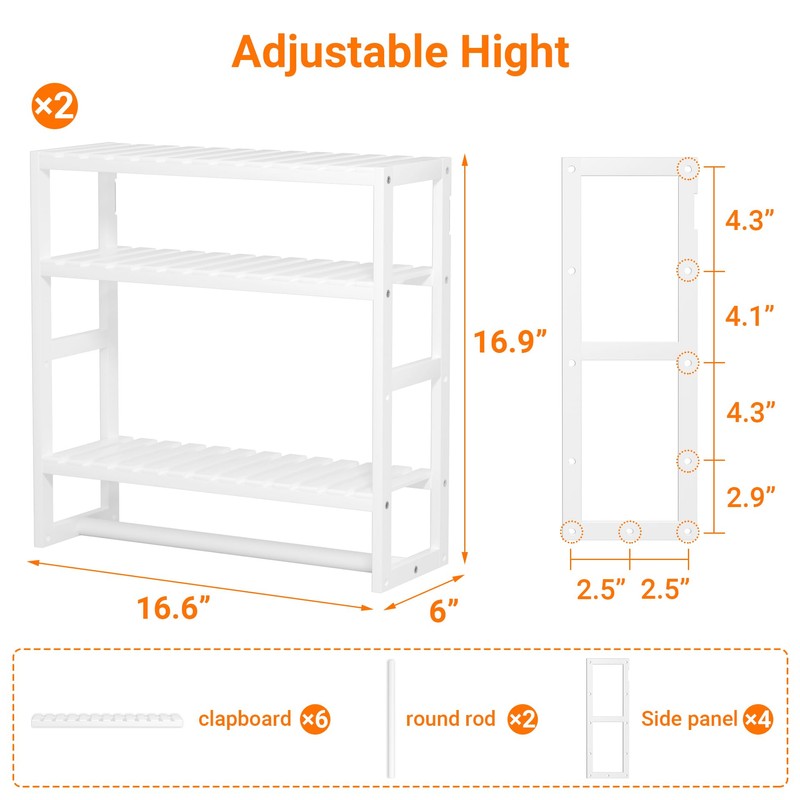 PPN Towel Rack Bathroom Storage Shelves Over The Toilet with Towel Bar 100% Bamboo Adjustable Height Floating Shelf Wall Shower Shelf for Small Space Bathroom Kitchen Multi Usage White New 2Pack