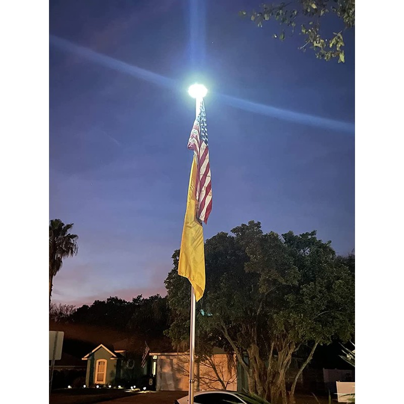 - Impressive 10000h LifespanIlluminate your flag properly for years with a simple 30-second setup. The solar flagpole light fits standard 15-25 ft flag poles with a shaft diameter of less than 0.63 inches. Please check the specifications to ensure it is compatible with your flagpole.