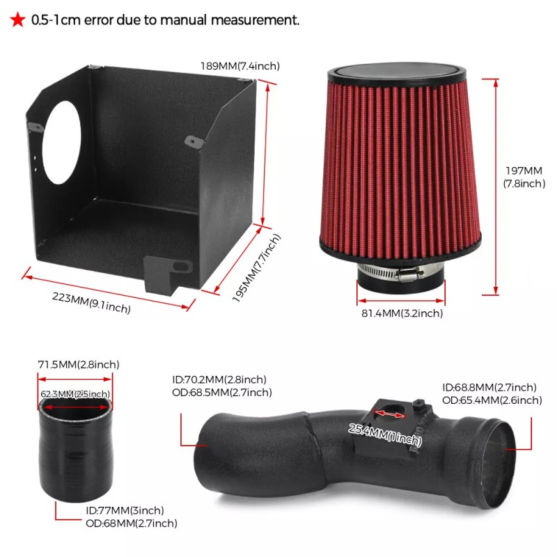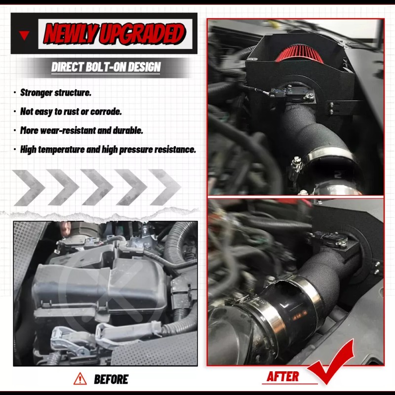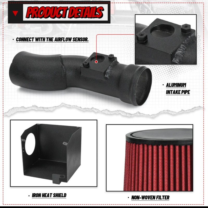 - Function: The air intake kit can help your engine to draw more cold air, resulting in better throttle response and higher explosive horsepower output.