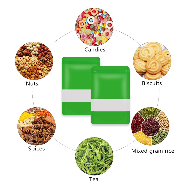 - Reusable and Heat Sealable : These stand up pouches can be sealed by heat seal machine, easy to tear notch on the top allows your customer to open it even without tools.With zip top closure makes it can be re-closed after open.The outer and inner covered with coating that make it leak-proof, keep contents from moisture and offer you an excellent shelf life.