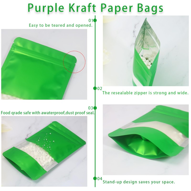 PQZKLDP 50 Pieces Smell Proof Green Bags-4.7X7.9 inch Resealable Matte Metallic Ziplock Bags, Stand Up Food Storage Bags with Window, Foil Pouch Sealable Bags for Small Business