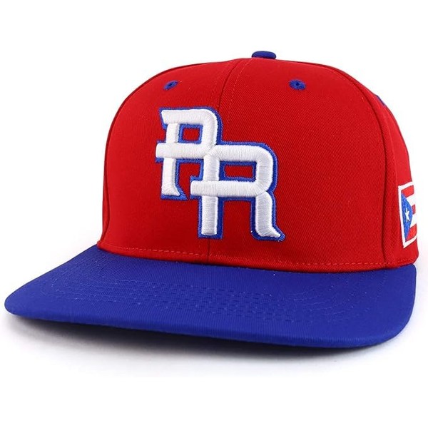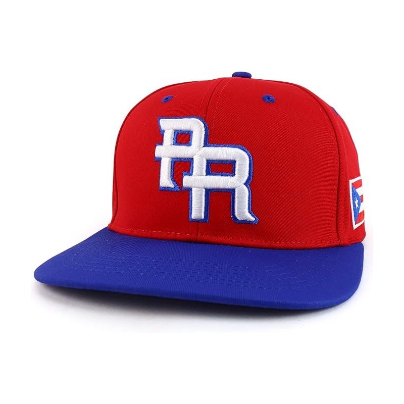 PR Embroidered Snapback Cap with Puerto Rico Flag (Polyester, Red/Blue)