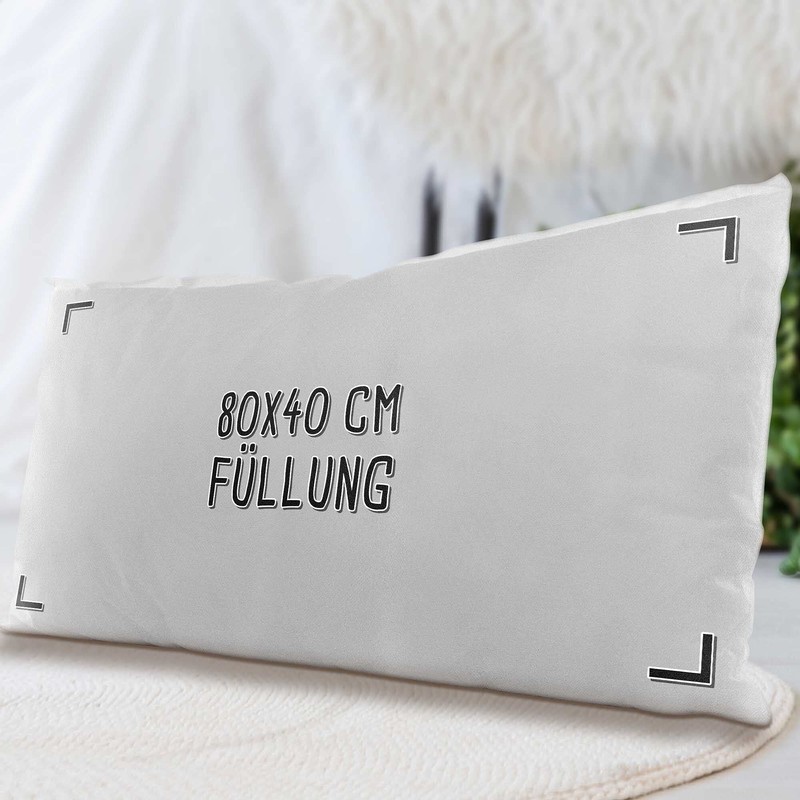 This cushion filling fits perfectly with our printed cushion covers, which you can easily design yourself. Whether as a decorative cushion, decorative cushion, sofa cushion, side sleeper pillow or travel pillow - the inner cushion in the format 40 x 80 cm is simply super practical and versatile. Together with a matching cushion cover printed according to your wishes, a photo cushion is the perfect gift and a sweet memory for Mother's Day, Father's Day, birthday, Valentine's Day, Christmas or just as an expression of love, as a little gift in between.