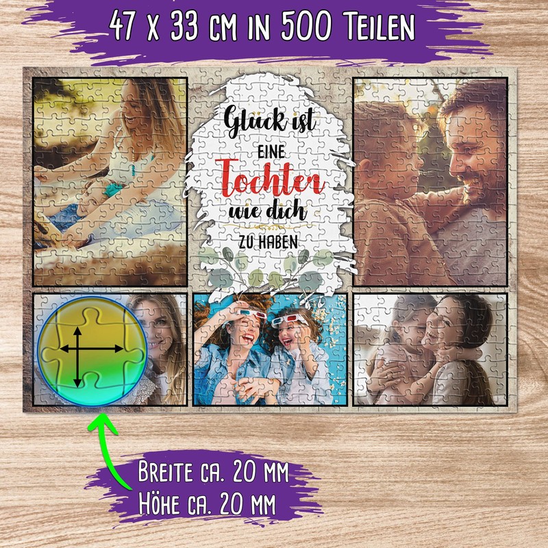 PR Print Royal Photo Puzzle with 5 Photos Print – Glück ist eine Tochter wie Dich zu haben – Collage Puzzle Design Yourself for the Daughter – 500 Pieces Including High-Quality Cardboard Packaging