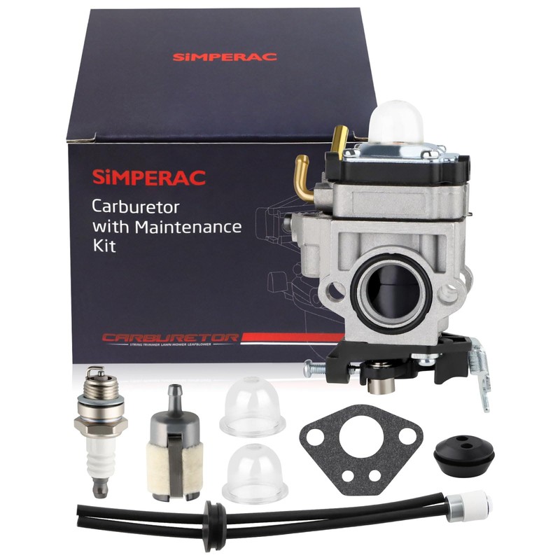 - Package includes:1 carburetor,1 gasket, 2 primer bulb, 1 fuel filter, 1 spark plug, 1 fuel line kit, 1 grommet