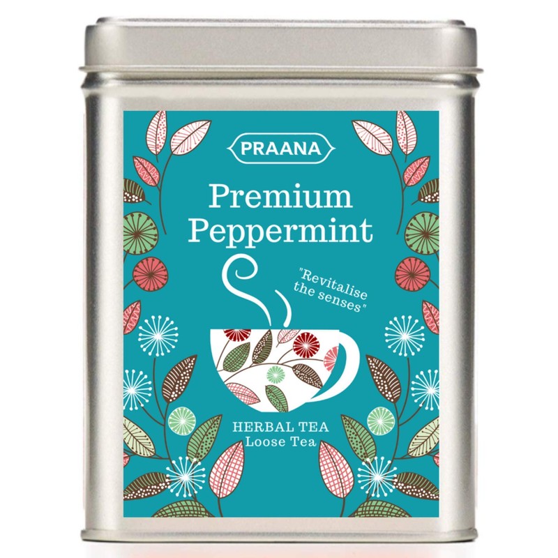 PRAANA TEA Pure Peppermint Herbal Tea, Gift Tin, 100 g