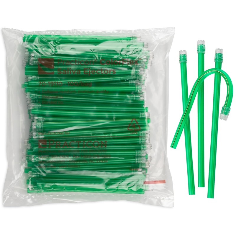 Practicon 7019110 GRE GRE Color-Flex Saliva Ejector, Green, Pack of 100
