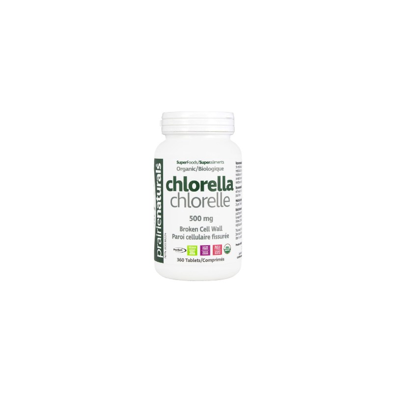 ORGANIC CHLORELLA BROKEN CELL WALL FROM PRAIRIE NATURALS.Prairie Naturals Organic Chlorella contains significant levels of vitamins C and E, and contains all of the b-vitamins. On top of that, Prairie Naturals Organic Chlorella also is extraordinarily rich in iron and calcium, two very important minerals in the human body. Levels of these minerals and vitamins are so high that they are even considered to be supplemental amounts. One of the most interesting health benefits of Chlorella is that it contains the highest concentration of RNA of any food. Chlorella also contains a high quantity of DNA. DNA and RNA from foods provide material for the repair and regeneration of human DNA/RNA. The 360tab bottle is a great money saver![TABS]