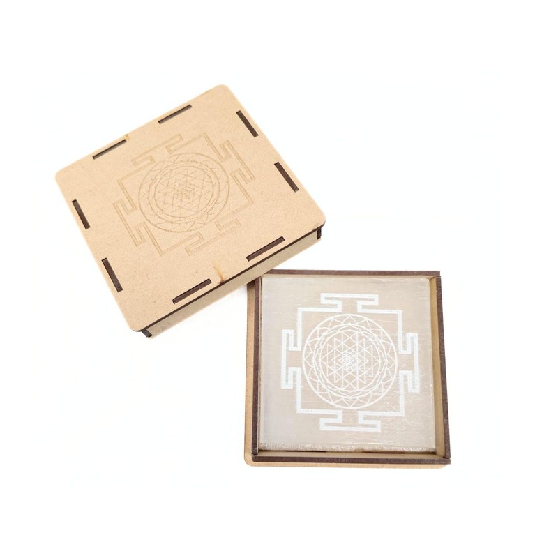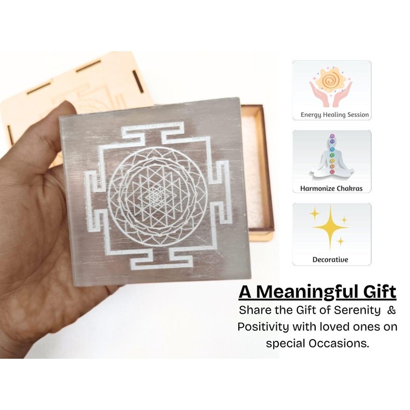 Prajet Selenite Square Plate for Energy Healing & Meditation | Crystal Charging Plate | Spiritual Home Decor | for Smudging, Healing, Recharging Crystals (Shree Yantra)