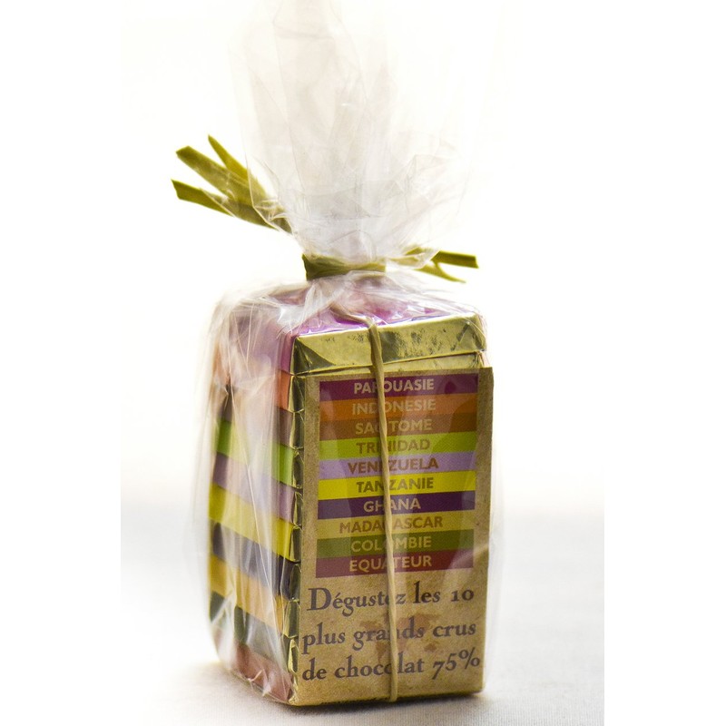 - 5 gram tasting squares of 10 different chocolates Made with passion by Francois Pralus of the Pralus company!