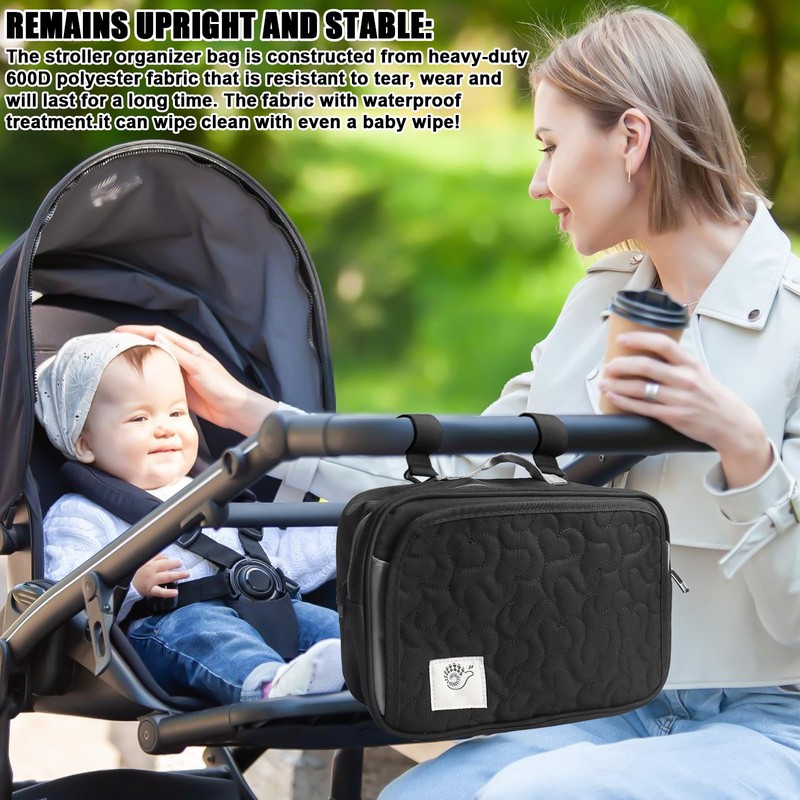 - High-quality materials: pram organiser is made of high-quality polyester fabric, which is baby-safe, water-repellent and scratch-resistant, durable and easy to clean