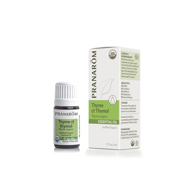 - ABOUT: A potent oil with a warm and herbaceous scent that is useful in household cleaning solutions to support a naturally healthy home. 100% pure, certified organic Thymus vulgaris ct thymol essential oil from Spain.