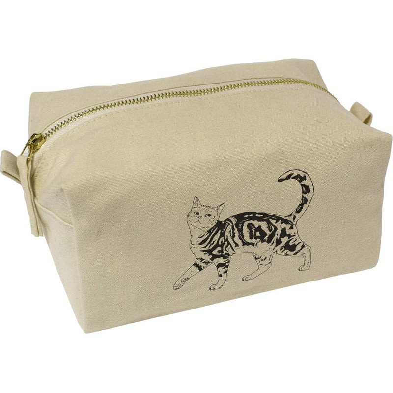 'Prancing Cat' Canvas Wash Bag/Makeup Case (CS00041435)