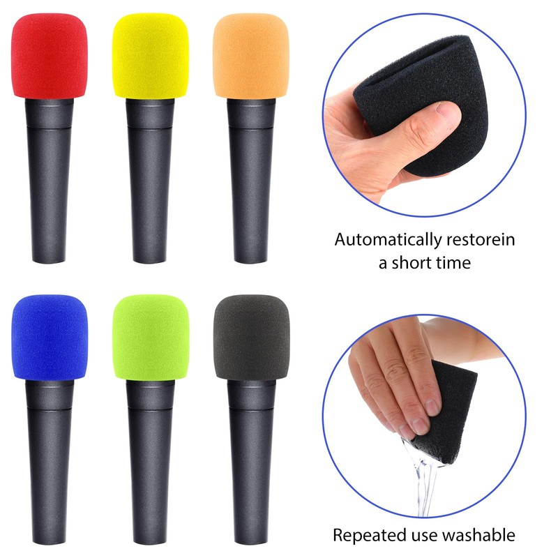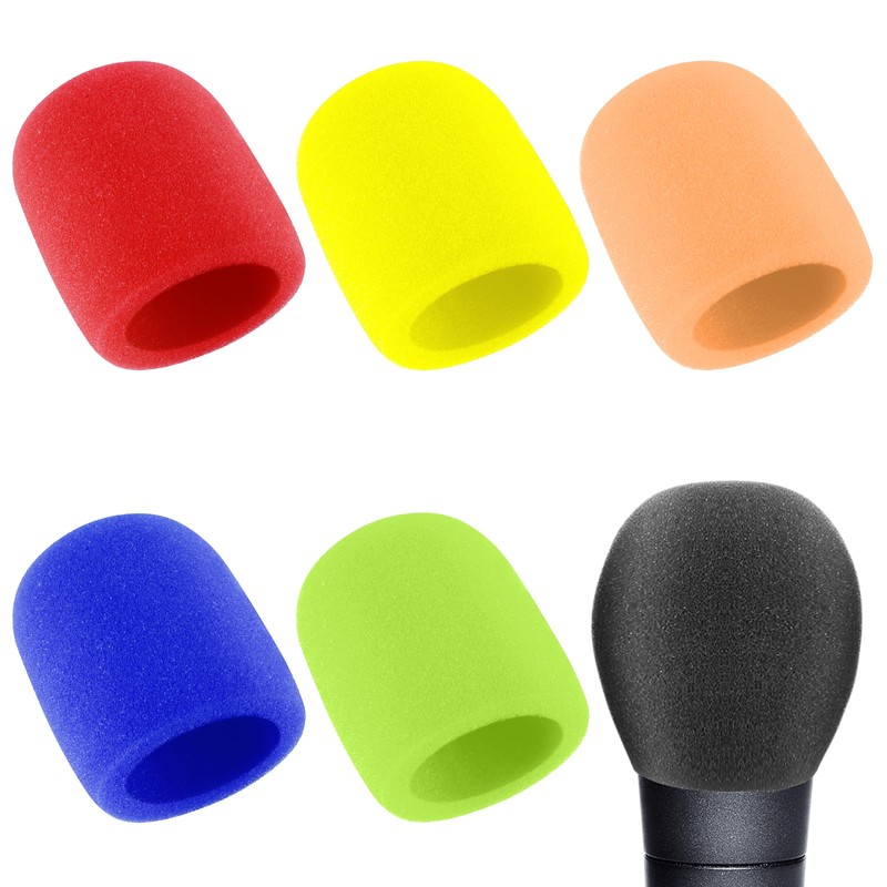 Prasacco 6 Pcs Microphone Covers Foam Mic Covers Foam Microphone Windscreen Colorful Hand-Held Microphone Sleeves