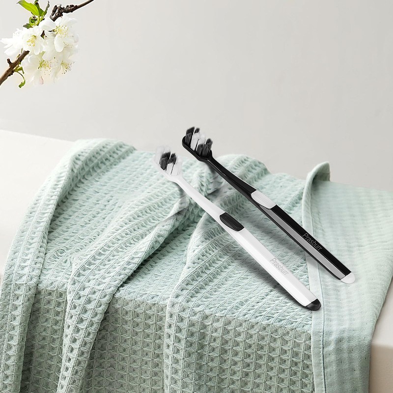 PRASBURR Extra Soft Toothbrushes for Adults, New 10k Micro Fine Nano Bristles for Sensitive Gums, Packed in Portable Case, Travel Toothbrush - Pack of 2 (Black and White)
