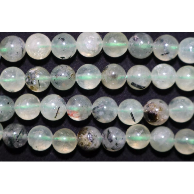 Prasiolite beads with Tourmaline 8mm about 15 1/2" strands (green quartz)