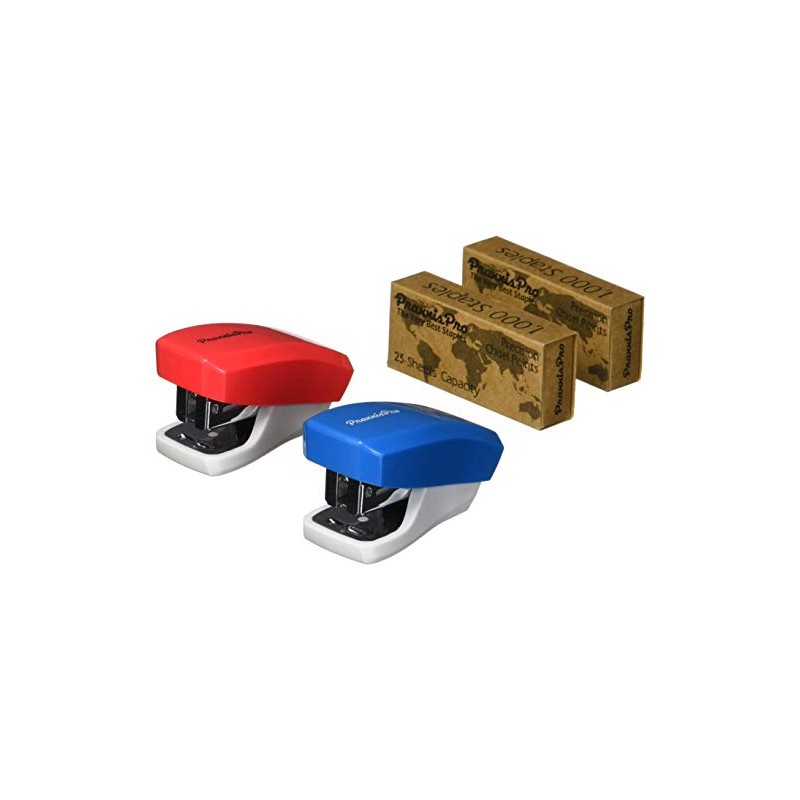 PraxxisPro Mini Staplers with Built-in Staple Removers, Staples 2 to 18 Sheets, Includes 2,000 Staples. Set of 2 (Blue & Red)