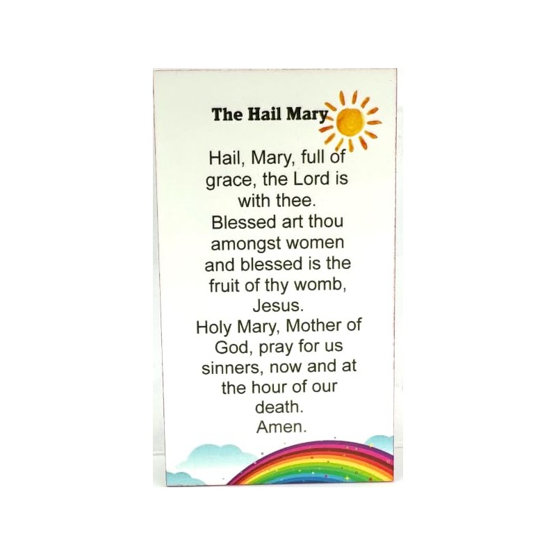 - Contains essential prayer cards such as "Hail Mary," "Our Father," and for a complete prayer experience.