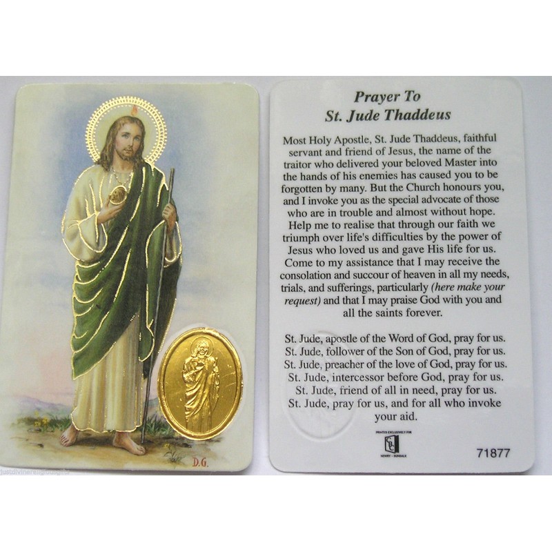 Prayer Card ST Jude Gold Foil Medal & Highlights