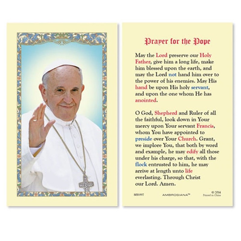 Religious Gifts - Prayer for the Pope Francis Laminated Cardstock Catholic Holy Card, 4 3/8 Inch