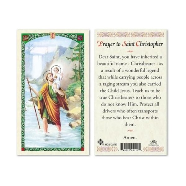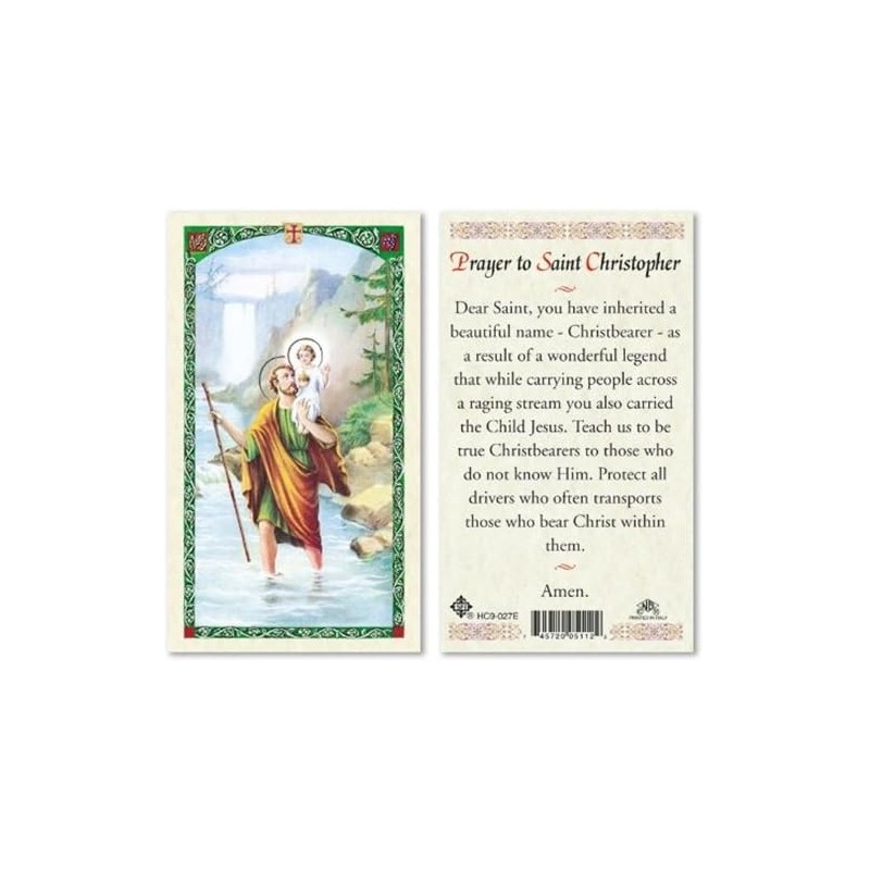 SF Prayer to Saint Christopher.Laminated 2-Sided Holy Card (3 Cards per Order)