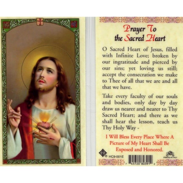 Prayer To The Sacred Heart.Laminated 2-Sided Holy Card (3 Cards per Order)