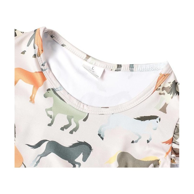 PRCSEE Toddler Girls Dress Green Horse Cartoon Casual Print Dresses Flutter Sleeve Outfits 2-3T