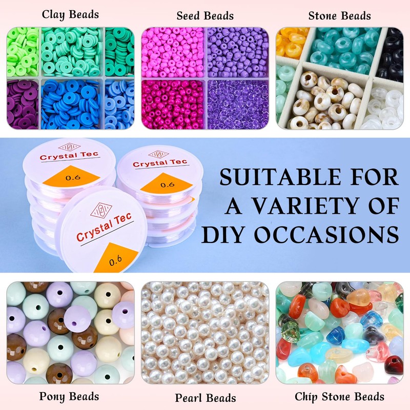- Multi functional application: 0.5mm round crystal string is perfect for various beads, including clay beads, pony beads, friendship bracelets, seed beads, crystal beads, letter beads, number beads, glass beads, candy beads, and transparent beads.
