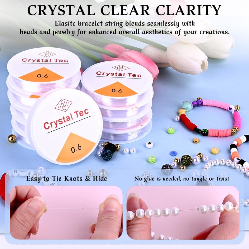 - Durability: 0.5mm crystal thread is made of elastic plastic rubber, with a crystal clear appearance, sturdy and durable, and will not turn yellow over time. It is of high quality, elastic, difficult to break, transparent, lightweight and durable.