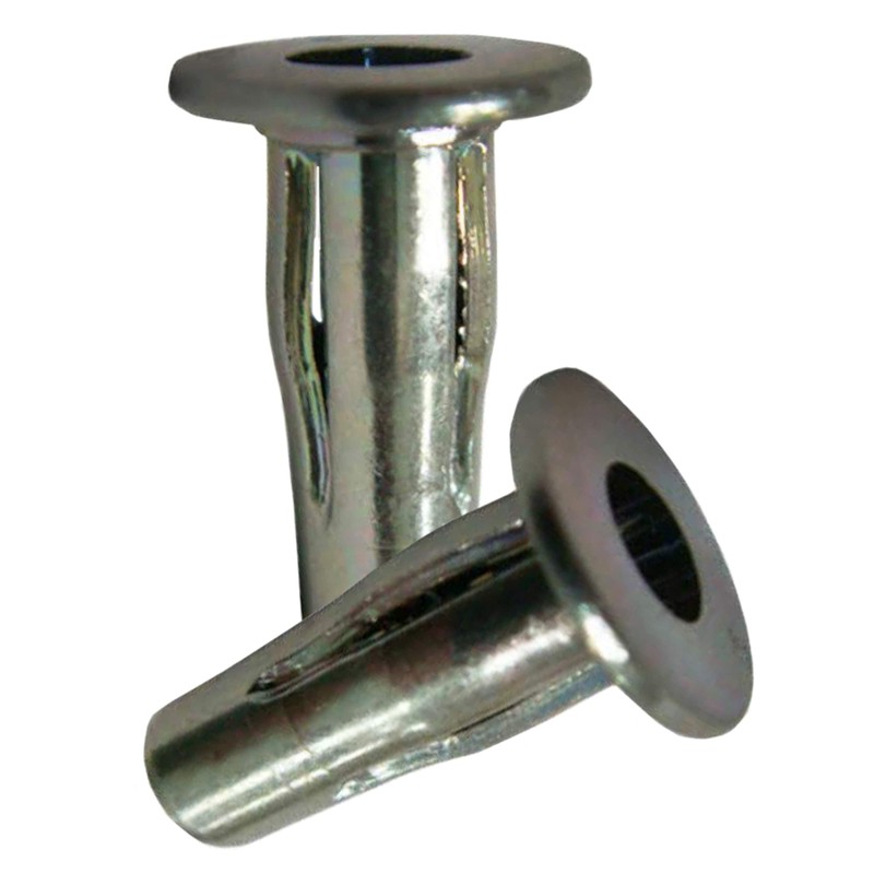 Plus Nuts are designed to be installed in soft materials like plastics without distorting. Its steel slotted body splits into four legs providing a wide load-bearing surface on the backside of the parent material.