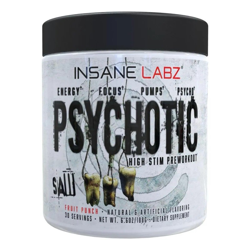 ¿Quieres jugar un juego? Psychotic SAW es el preentrenamiento más loco jamás realizado por Mad Chemist y su equipo en Insane Labz. ¡Han empacado la fórmula llena de ingredientes que trabajan juntos para darte todo lo que necesitas para matarlo en el gimnasio!